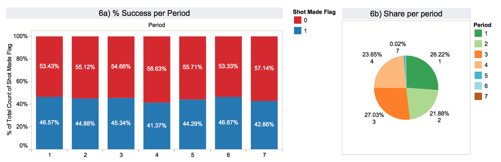 In 6) I have summarised the performance per period of the game and the share of shots in each period. Here we see a more even distribution.
